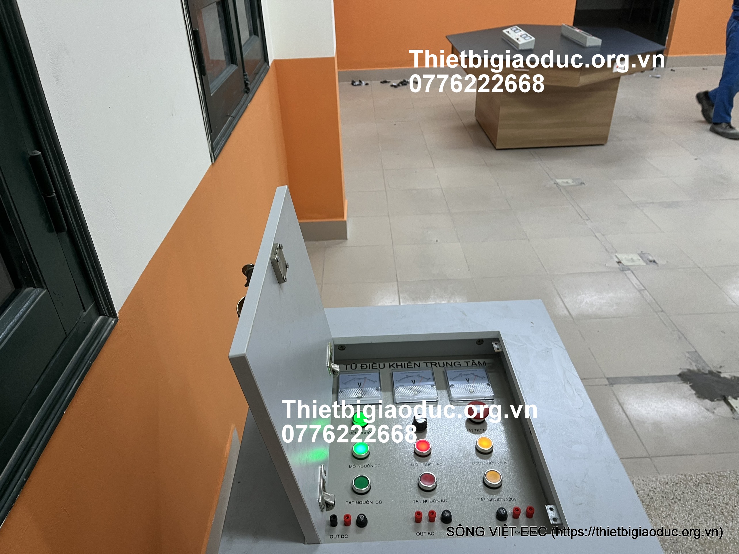 Hệ thống điều khiển trung tâm: Tủ có dòng điện 37A điều hành toàn bộ hệ thống điện của phòng học điện thế và dòng theo các bài học. Điện thế 220V, Xoay chiều từ 0-12V, Một chiều từ 0-12V, Dòng t