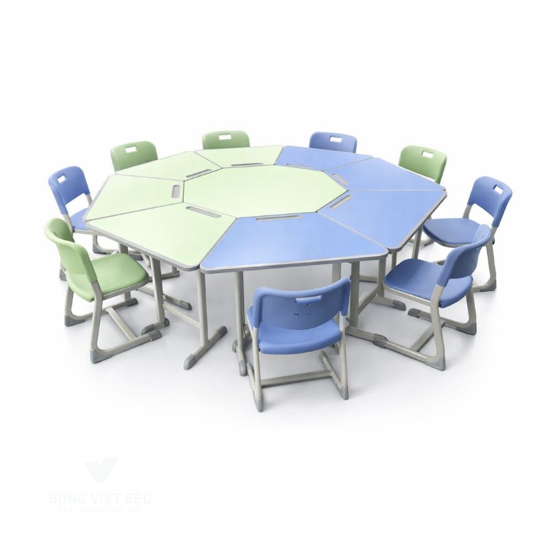 Mẫu bàn bát giác lắp ghép này hội tụ nhiều đặc tính ưu việt phù hợp với môi trường học đường năng động:
