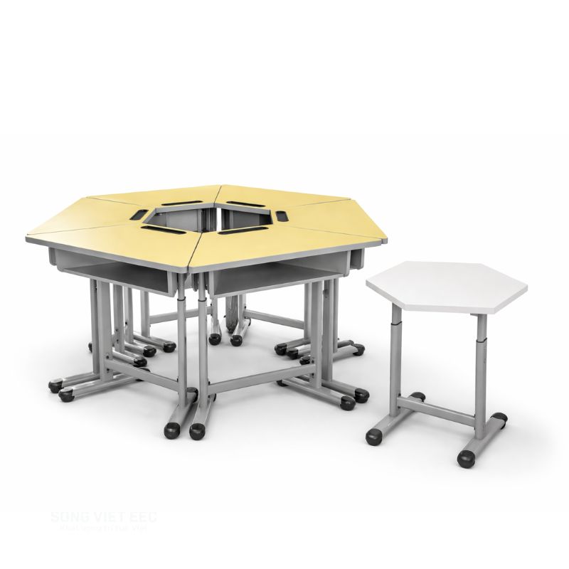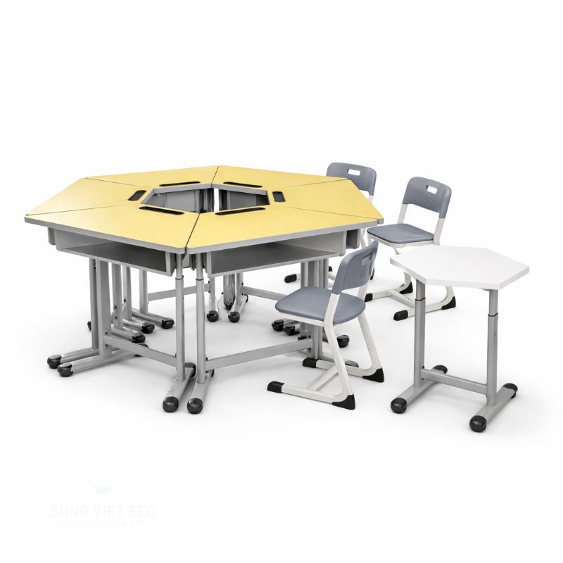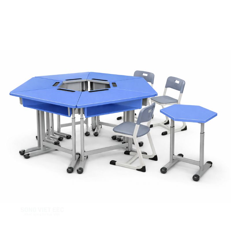Trong kỷ nguyên giáo dục 4.0, không gian học tập không còn bó hẹp trong những dãy bàn thẳng tắp truyền thống. Việc chuyển đổi sang mô hình học nhóm và các phòng chức năng đòi hỏi những thiết bị linh hoạt hơn. Bàn học sinh đa chức năng hình lục giác chân tăng chỉnh mặt gỗ mdf chính là giải pháp đột phá mà Công ty Thiết bị Giáo dục Sông Việt mang đến cho các trường học và trung tâm giáo dục hiện đại.