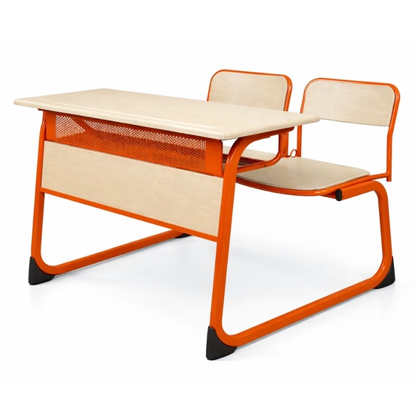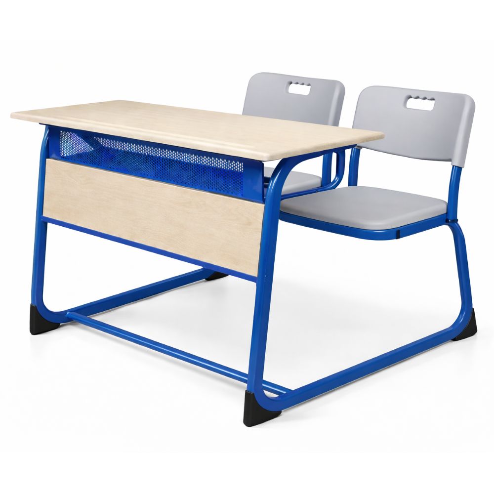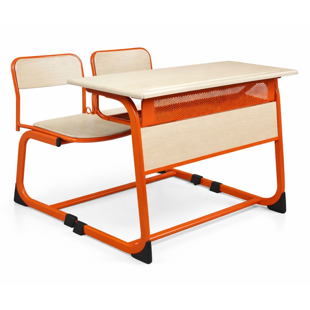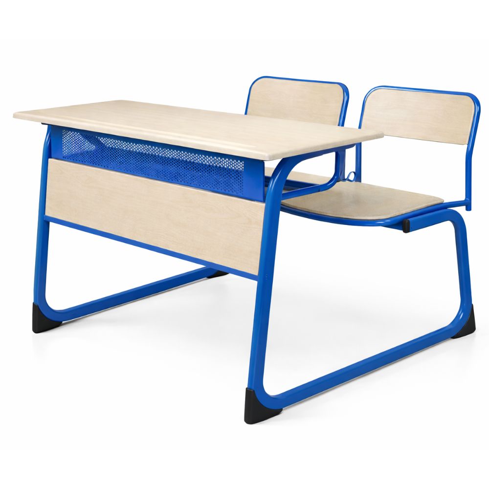 BÀN HỌC SINH 2 CHỖ NGỒI LIỀN S-STUDY ERGONOMIC – CHÂN TĂNG CHỈNH, KHAY THÉP ĐỂ SÁCH, GHẾ CÔNG THÁI HỌC