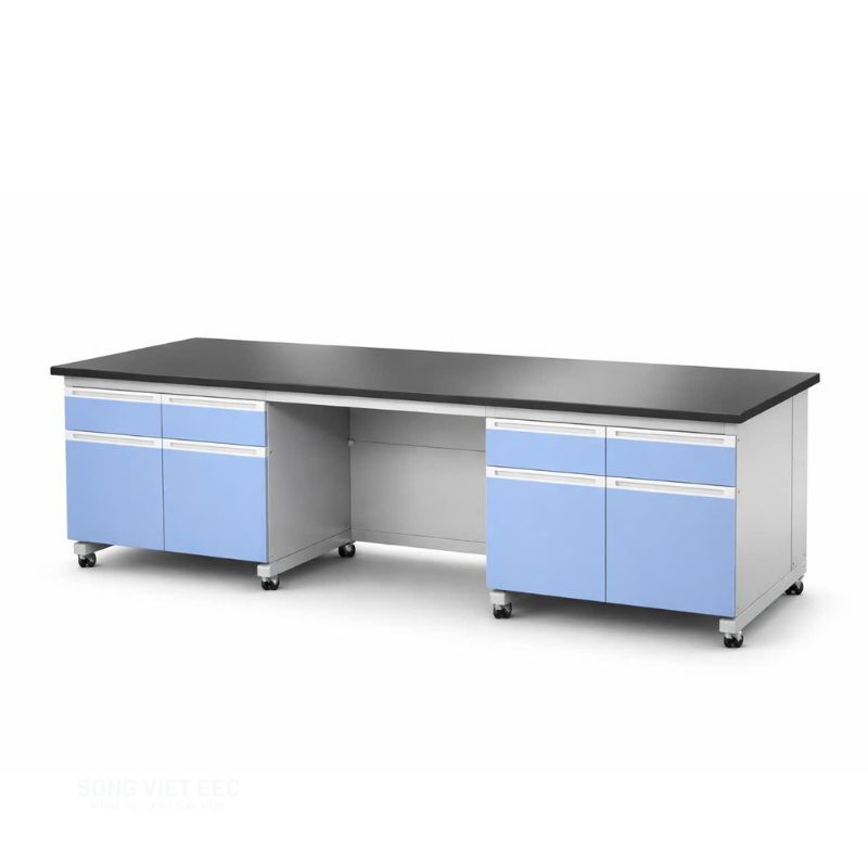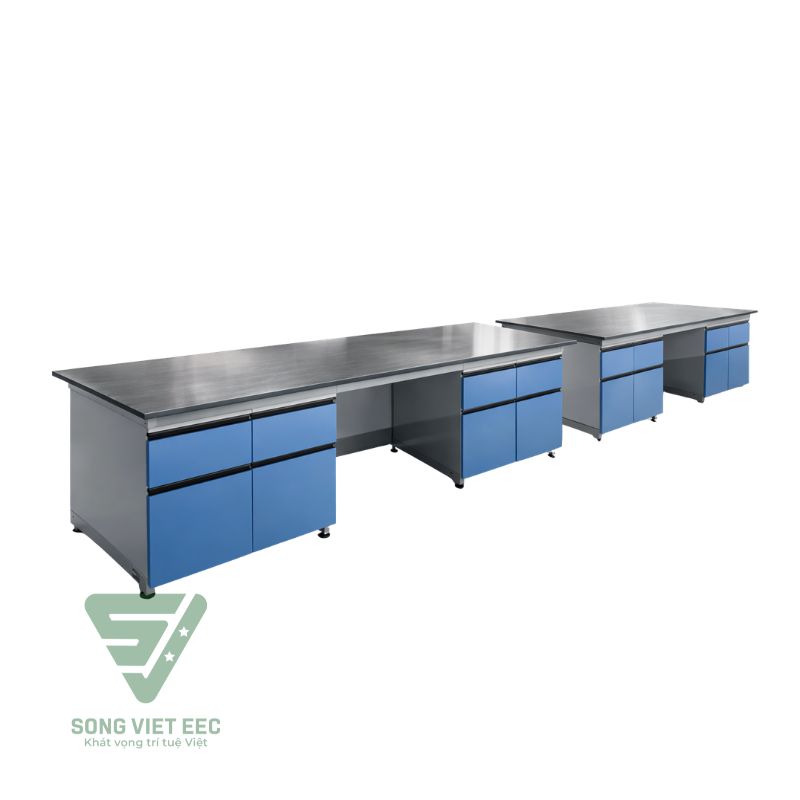 Trong thiết kế phòng thí nghiệm hiện đại, việc phân bổ khu vực thao tác khô và thao tác ướt là chìa khóa để duy trì sự ngăn nắp và an toàn. Bàn thí nghiệm áp tường không chậu của Nhà máy Sông Việt EEC được ra đời như một mắt xích hoàn hảo trong hệ thống đó. Với thiết kế tinh gọn áp sát vách tường, sản phẩm tận dụng tối đa những diện tích "chết", biến chúng thành không gian đặt máy móc, thiết bị đo lường hoặc khu vực ghi chép số liệu lý tưởng. Điểm sáng giá nhất của sản phẩm chính là mặt bằng HPL Compact nhập khẩu dày 18mm – vật liệu "kim cương" trong ngành nội thất Lab với khả năng kháng axit, chịu nhiệt và chống trầy xước vô song. Không cần hệ thống chậu rửa rườm rà, mẫu bàn này tập trung vào sự vững chãi của khung thép 40x40 và tính tiện ích từ hệ thống ngăn kéo CNC tinh xảo. Đây chính là giải pháp tối ưu cho các phòng thí nghiệm vật lý, công nghệ hay các trung tâm nghiên cứu cần một bề mặt thao tác sạch sẽ, ổn định và đạt chuẩn ISO quốc tế.