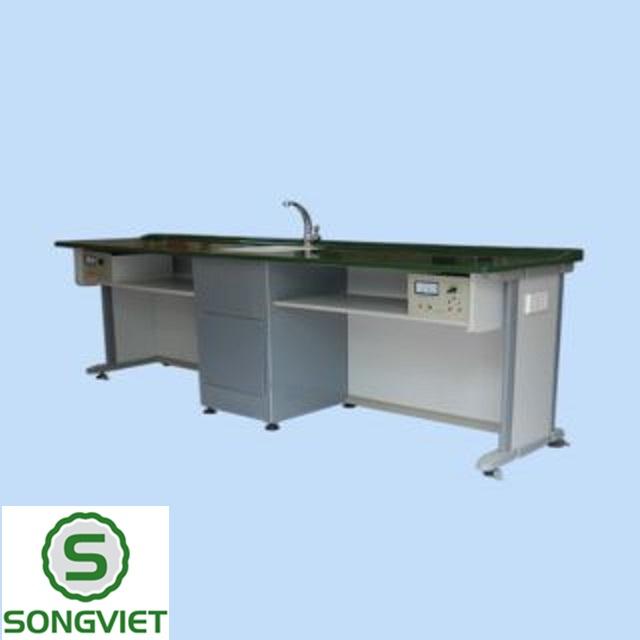 • Mặt bàn bằng vật liệu tổng hợp cao cấp phủ composite dày 20mm, cách điện, chịu ăn mòn hoá chất, chịu nhiệt, chịu ẩm và chịu nước, có độ bền cơ học cao.