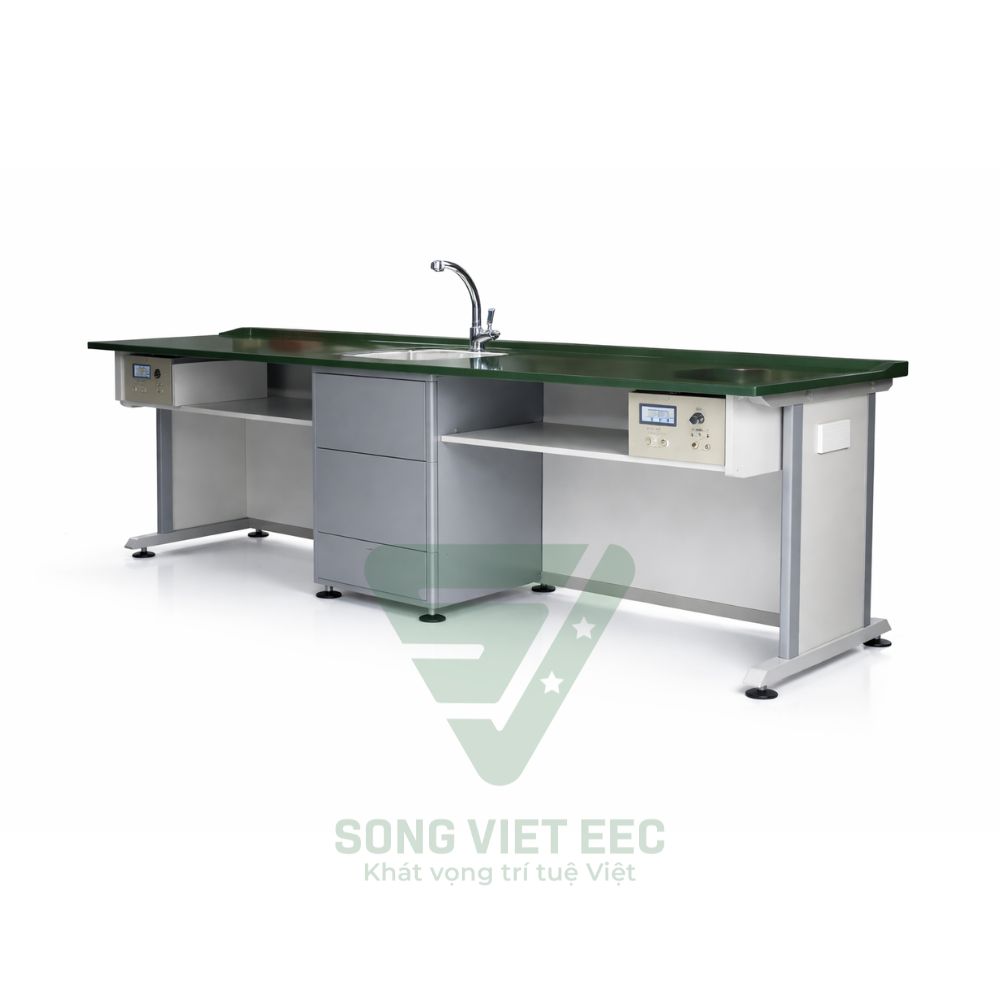 Trong môi trường phòng thực hành Hóa - Sinh, nơi thường xuyên tiếp xúc với nước và các hóa chất ăn mòn (Axit, Bazơ), nỗi lo lớn nhất của các nhà trường là chân bàn bị rỉ sét, mục gãy. Bàn thí nghiệm chân nhựa chịu lực tích hợp hộp điện của Nhà máy Sông Việt EEC chính là giải pháp "vĩnh cửu" giải quyết triệt để vấn đề này.