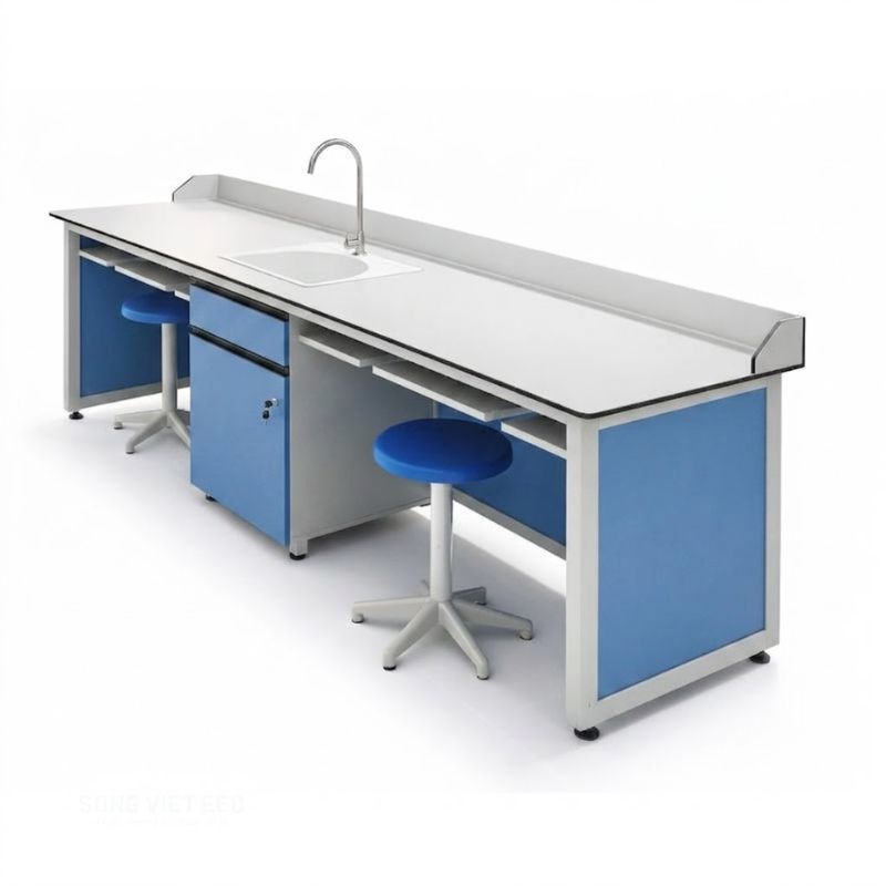 Trong thiết kế nội thất trường học hiện đại, khu vực phòng Lab luôn là nơi đòi hỏi sự khắt khe nhất về tính an toàn và khả năng chịu đựng hóa chất. Bàn thí nghiệm hóa sinh mặt HPL compact- chậu nhựa vòi inox chịu axit của Công ty Sông Việt được ra đời nhằm thiết lập một chuẩn mực mới cho không gian thực hành 4.0. Với diện tích thao tác lý tưởng lên đến 2400x600mm, sản phẩm không chỉ mang lại sự rộng rãi mà còn là một lá chắn bảo vệ học sinh trước các tác nhân ăn mòn hóa học. Sự kết hợp giữa tấm HPL Compact nhập khẩu cao cấp cùng hệ thống chậu rửa PP chuyên dụng giúp triệt tiêu hoàn toàn nỗi lo về ẩm mốc hay sự tàn phá của axit đậm đặc. Từng đường nét được xử lý bằng công nghệ CNC chính xác tuyệt đối, không chỉ đảm bảo công năng mà còn mang lại vẻ đẹp chuyên nghiệp, hiện đại. Đây chính là mảnh ghép hoàn hảo để các đơn vị giáo dục nâng cấp cơ sở hạ tầng, đáp ứng đầy đủ các tiêu chuẩn quốc tế về quản lý chất lượng và bảo vệ môi trường trong dạy và học.