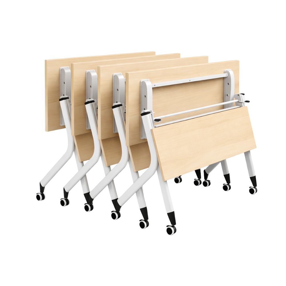 Xếp lồng tiết kiệm diện tích (Nesting): Khi mặt bàn dựng đứng, thiết kế chân chữ V hoặc chữ T cho phép các bàn đẩy lồng vào nhau. 10 chiếc bàn khi xếp gọn chỉ chiếm diện tích bằng 2 chiếc, giải phóng không gian cực nhanh khi cần tổ chức sự kiện khác.