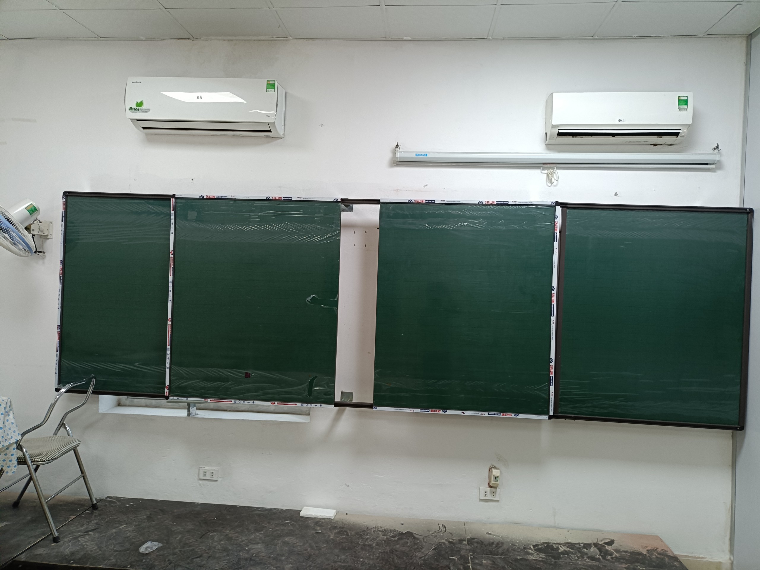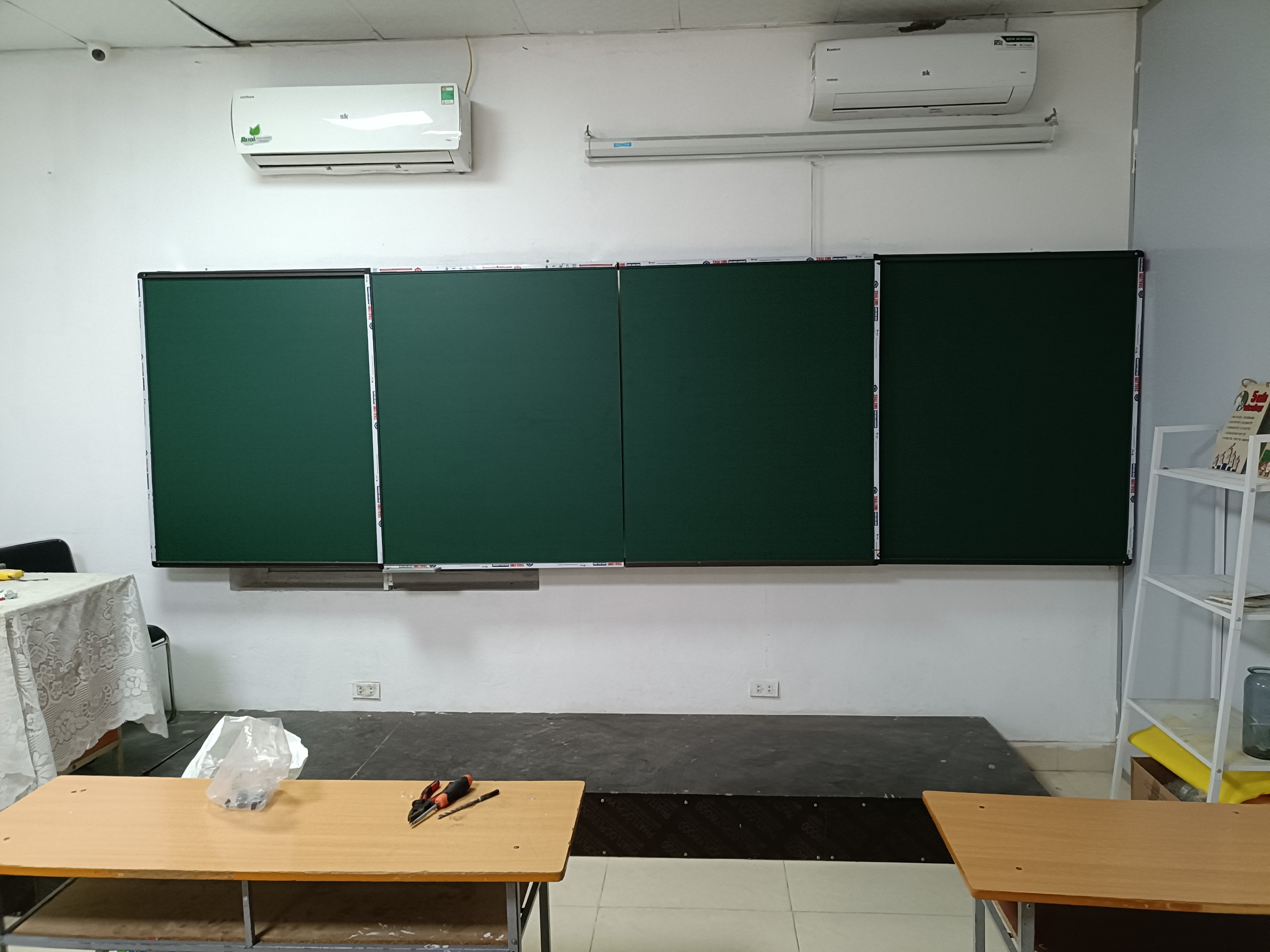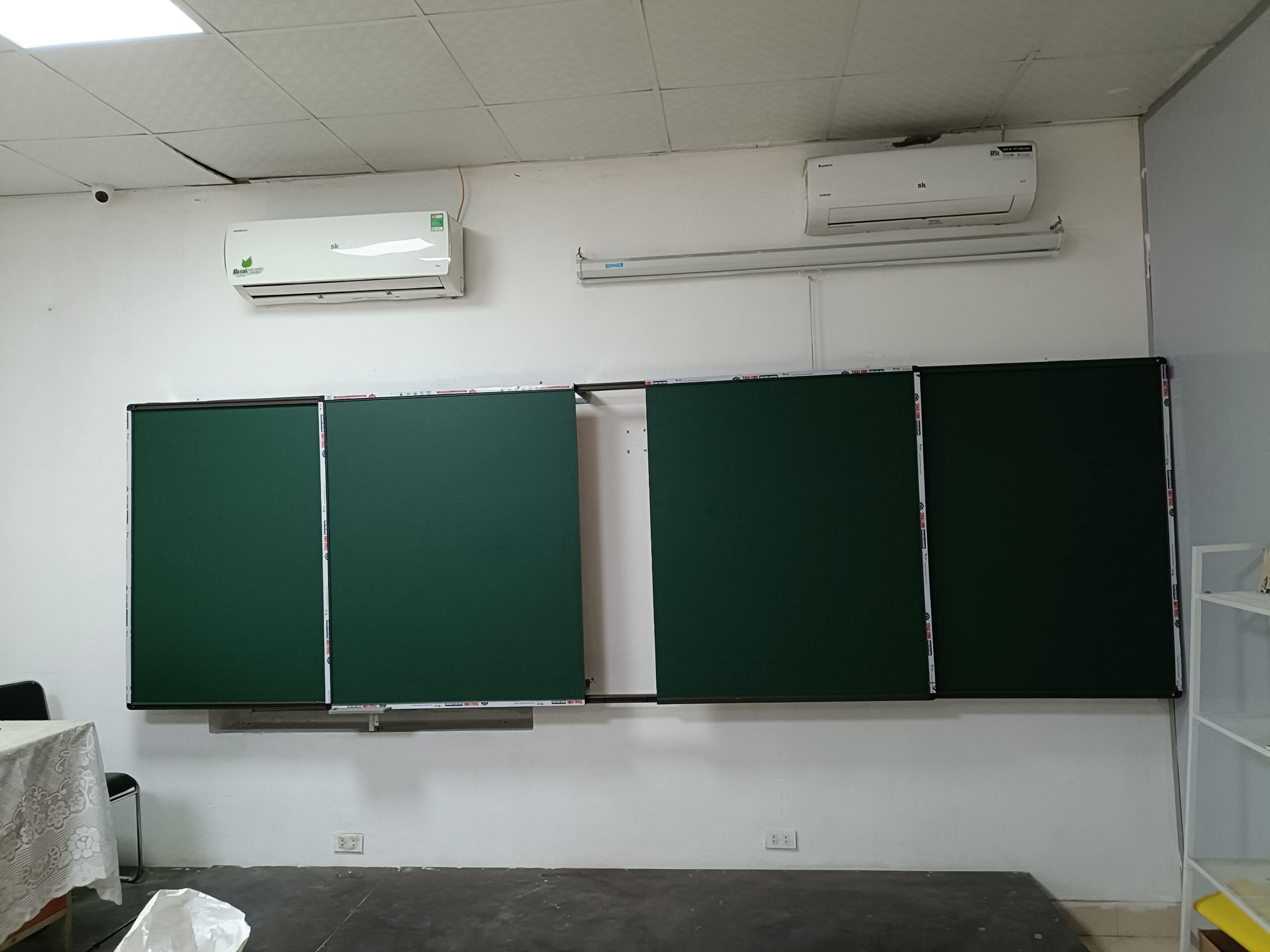 -Hệ thống trượt gồm 2 thanh ray: 1 ray trên và 1 ray dưới. Khung ray bằng nhôm đúc hợp kim, kích thước ray 26.5 x 32.1mm. Ray trượt có mặt cắt dạng chữ C, chống bám bụi, chống kẹt phấn và đảm bảo bánh xe của tấm bảng trượt không bị trượt ra ngoài khi sử dụng.