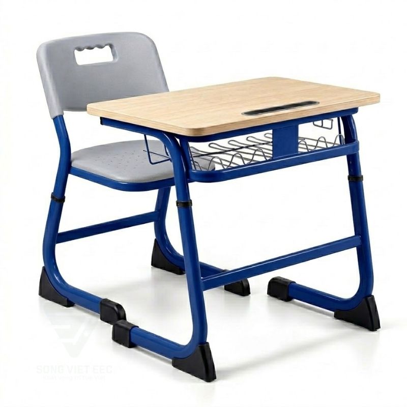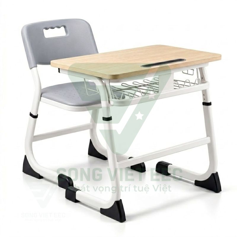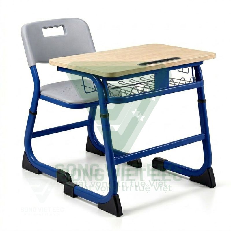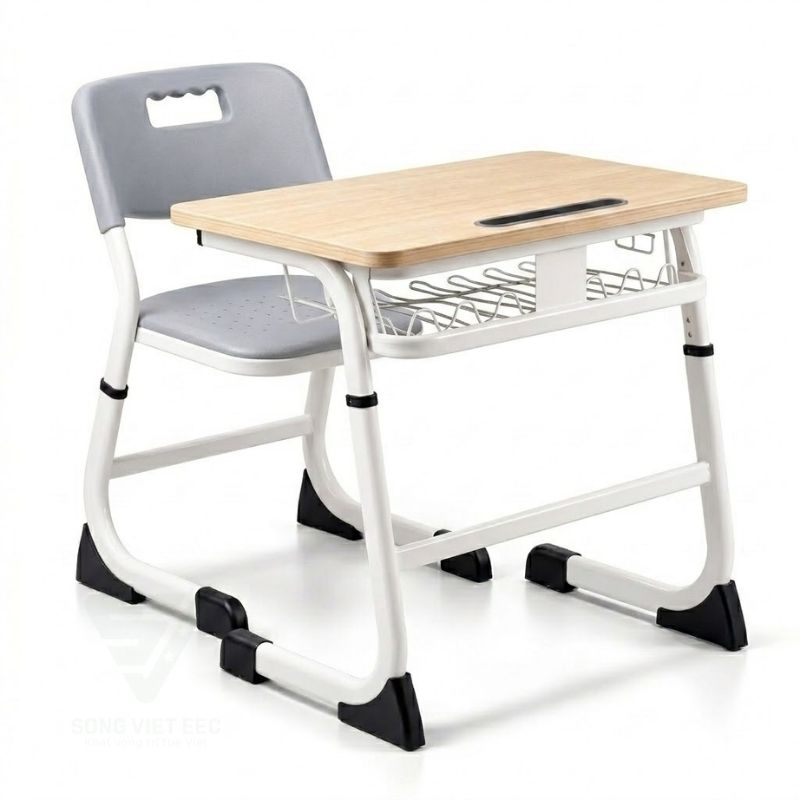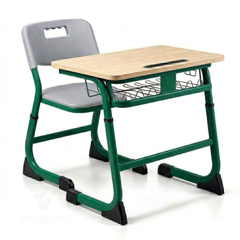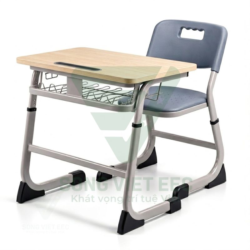 Mặt bàn MDF phủ Melamine dày 18mm có khả năng chống ẩm, chống trầy xước tốt, kết hợp với khung thép Oval mạ kẽm chắc chắn, đảm bảo độ bền vượt trội. Thiết kế công thái học giúp học sinh duy trì tư thế ngồi đúng, giảm thiểu nguy cơ gù lưng và cận thị. Đây là lựa chọn lý tưởng cho các trường học, trung tâm đào tạo và các dự án giáo dục hiện đại.