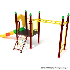 Khu liên hoàn cầu trượt nhà 3 khốiKT: 520x250x300cmHàng nhập khẩu 100%, nhựa HPPE hàn quốc, thép sơn tĩnh điện1- cầu trượt kép1- cầu trượt soắn1 thang leo2 khối nhà