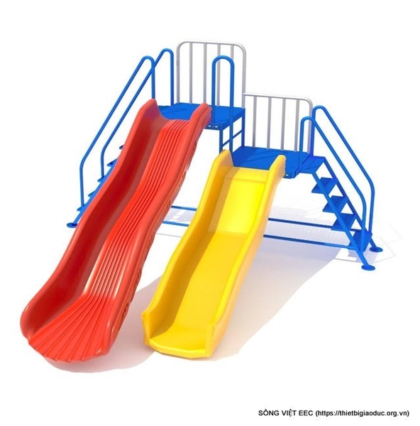 Thang leo 2 cầu trượt QC : 3000x1200x1600 Khung bằng thép, cầu trượt thẳng bằng nhựa đúc